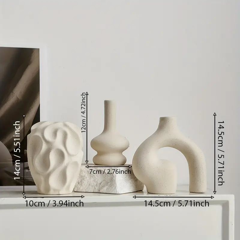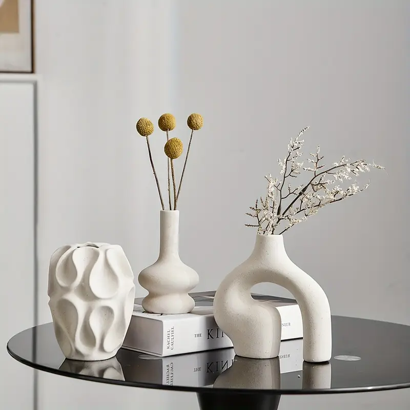 • 3-piece ceramic vase set (round, donut, and abstract shapes)